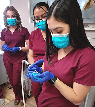 “I think everyone should start off as a dental assistant because it introduces you to everything,” said Benavidez. “From there you can go to oral surgery, or endodontics (treatment of pulp inside a tooth), implants (artificial tooth root for attaching a tooth or bridge), orthodontics (correcting tooth misalignment), or periodontics (gum disease), surgical assistant, office manager, program coordinator, teacher – lots of opportunity.”